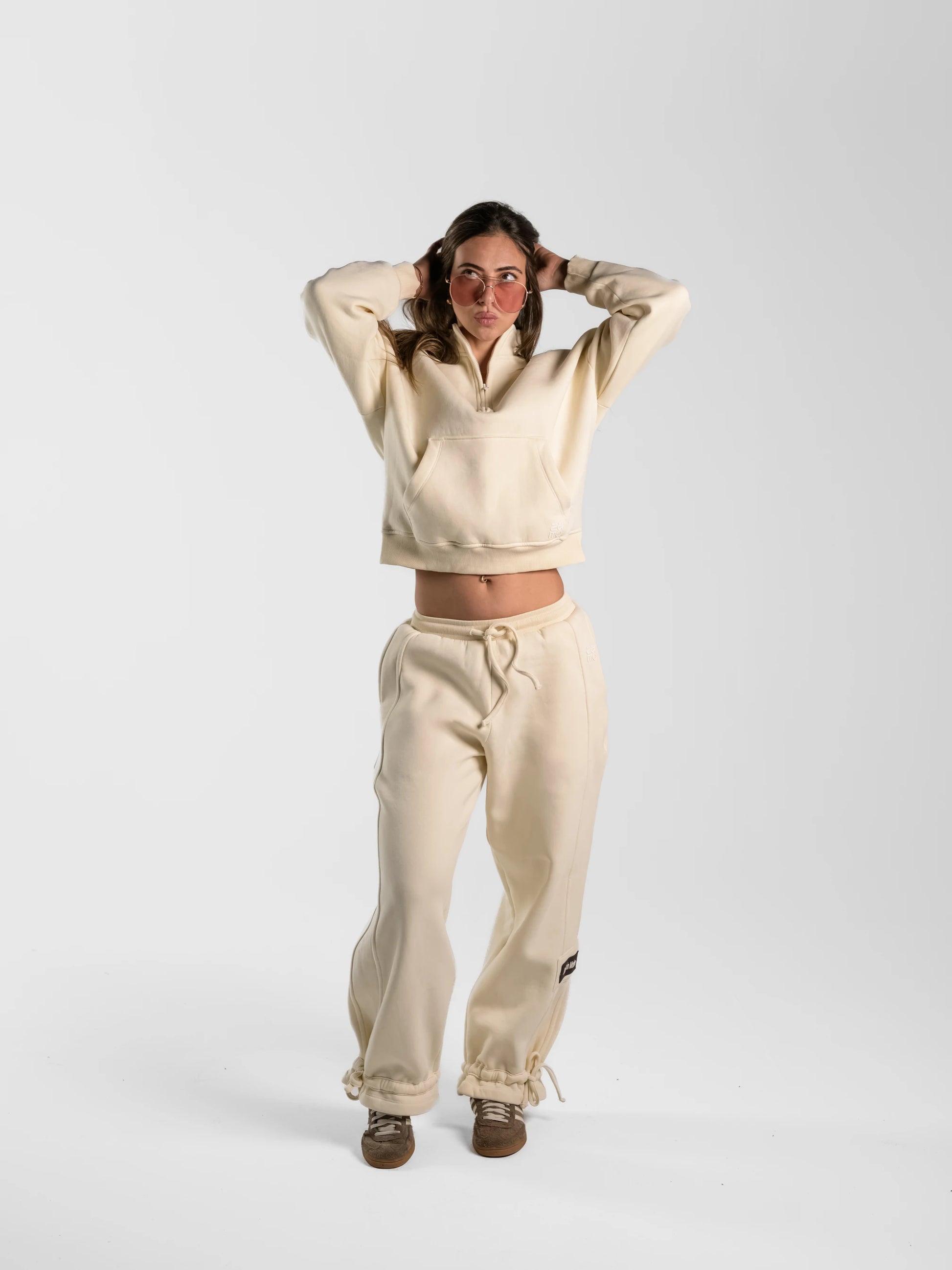 - Relaxed fit pants with elastic waistband
